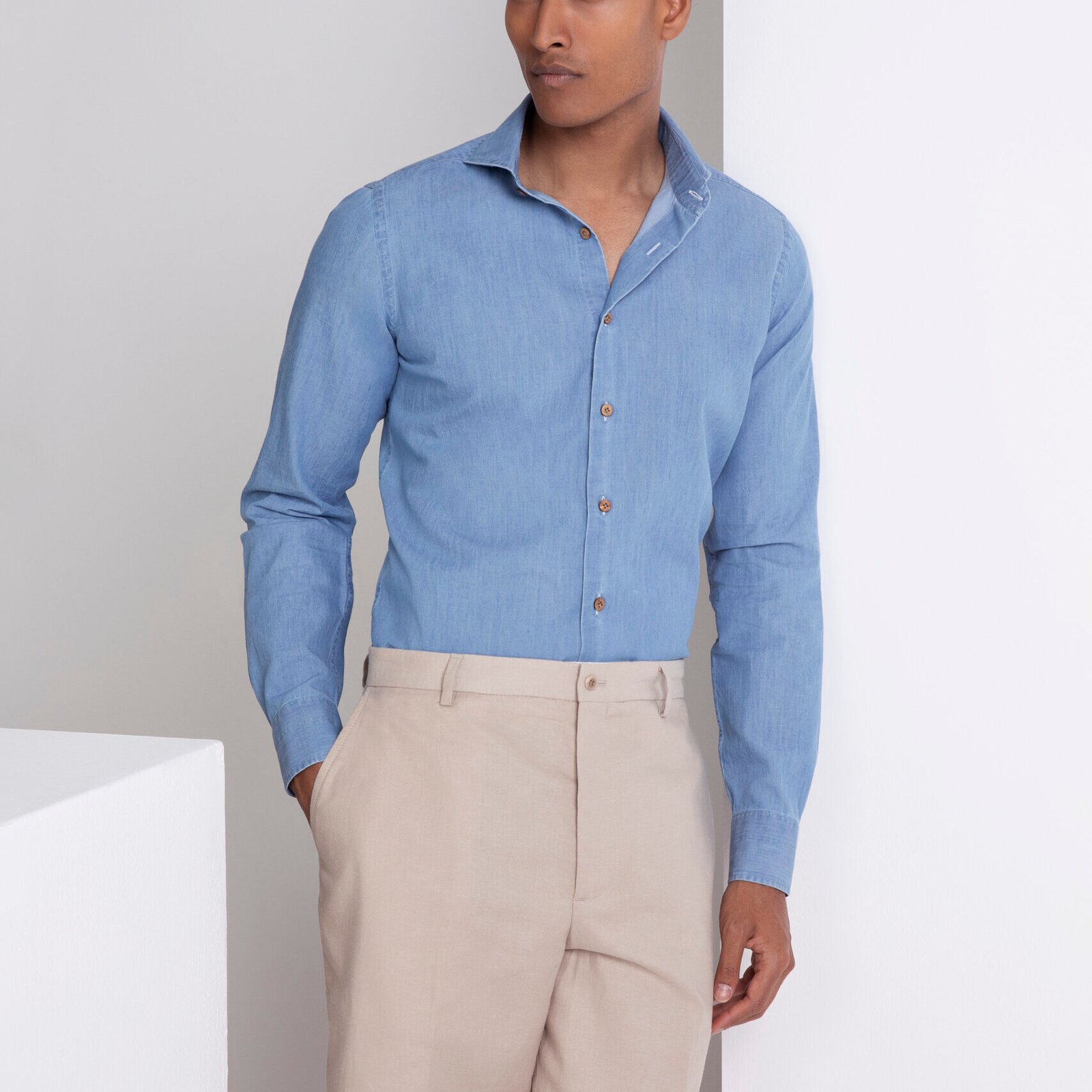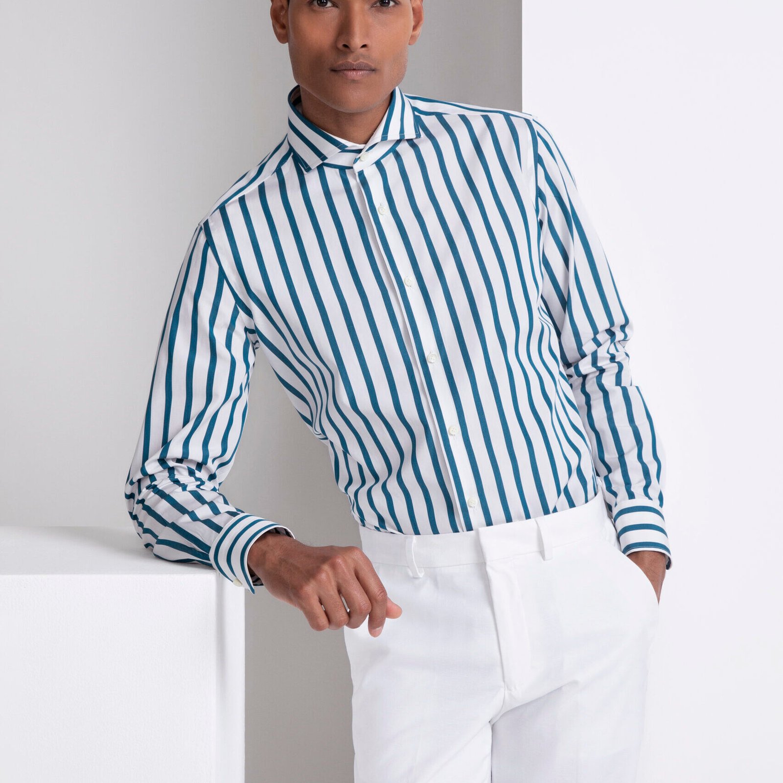 La linea Agho rappresenta l’eccellenza delle camicie di fascia medio-alta, interamente prodotte in Italia. Disponibile nei migliori store italiani, ogni camicia Agho è sinonimo di qualità e cura dei dettagli: chiusura a un ago, colletto rifinito con listino rigirato, stecche estraibili, rinforzi in tessuto e bottoni in madreperla, caratteristiche che rendono questa camicia un simbolo di eleganza e raffinatezza.