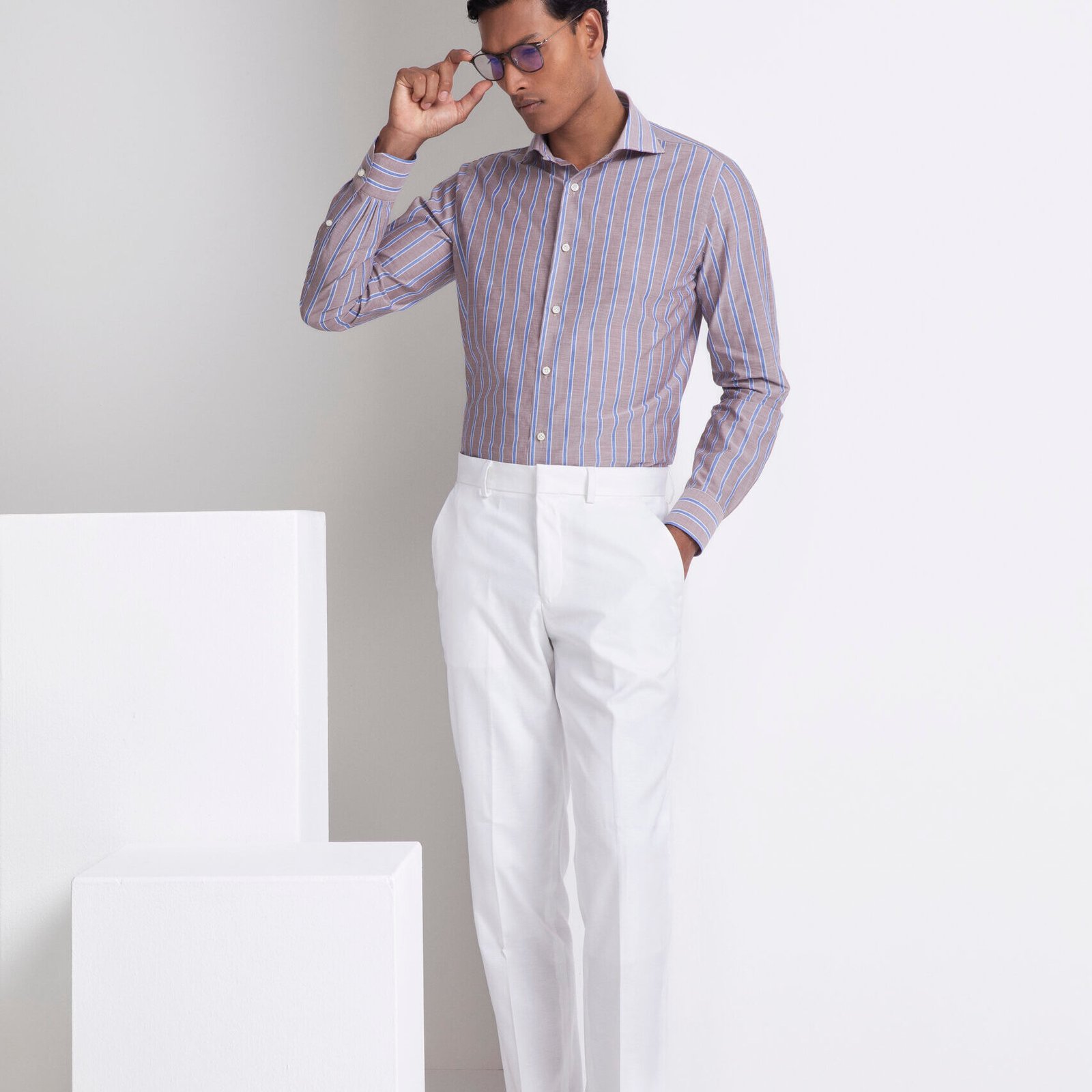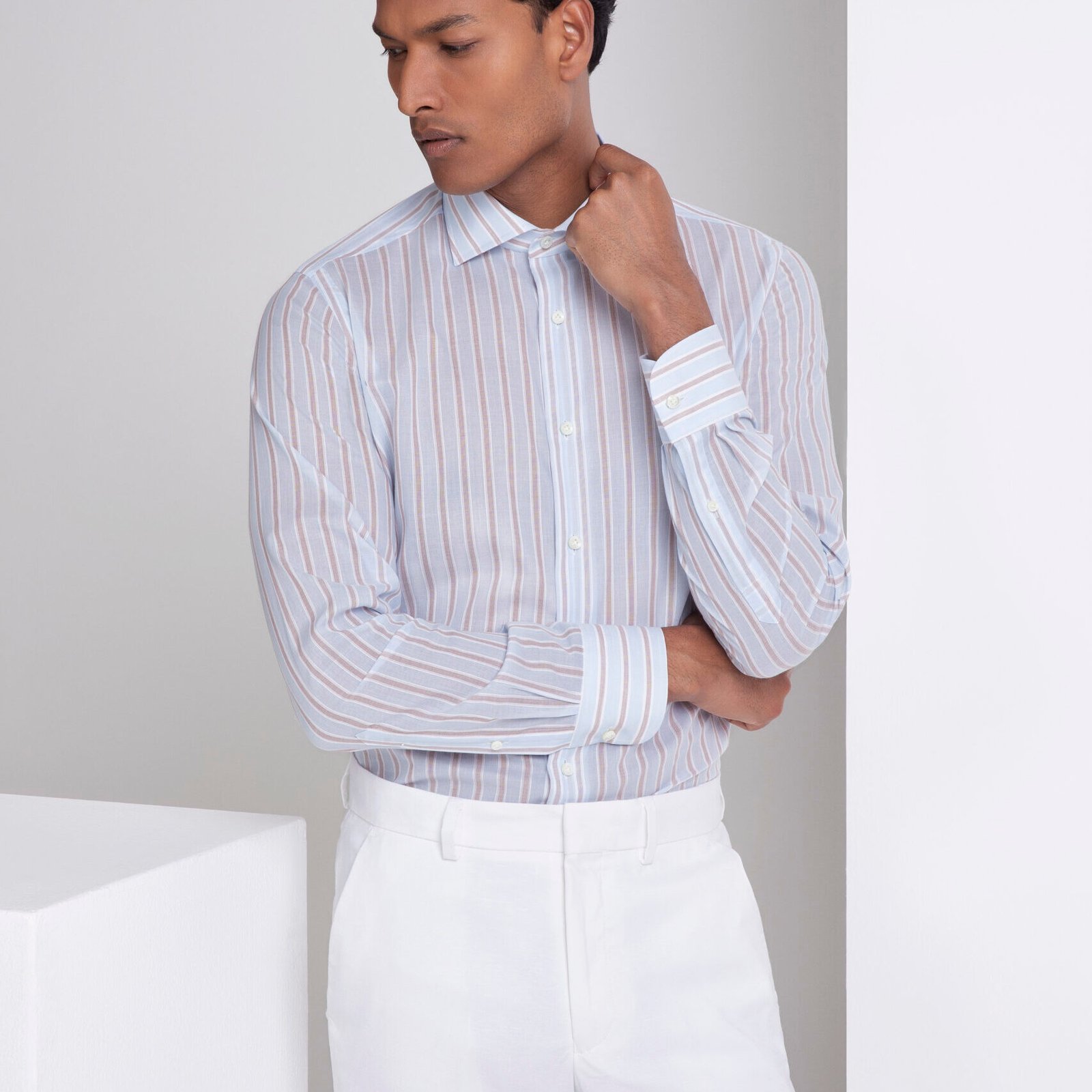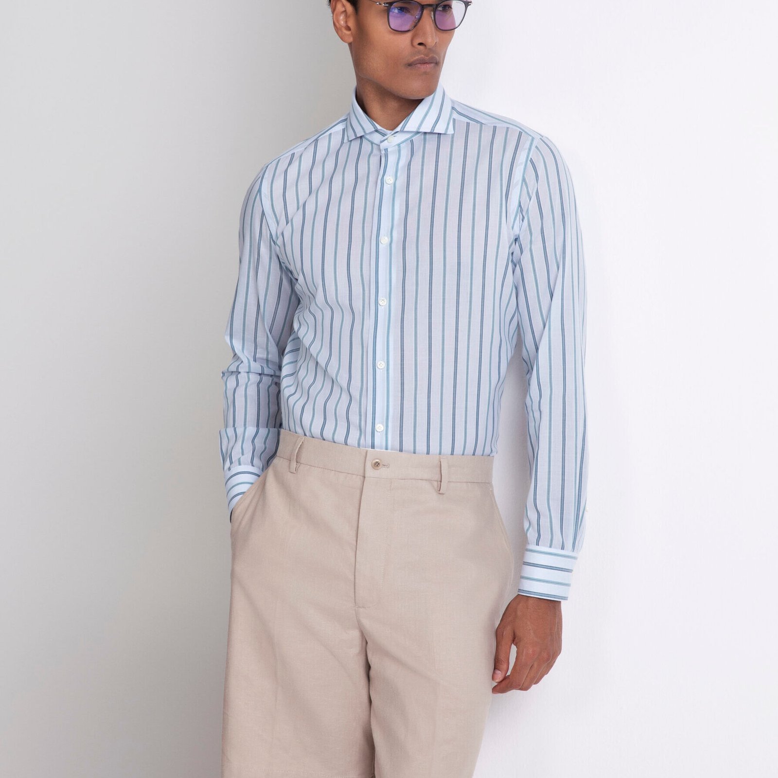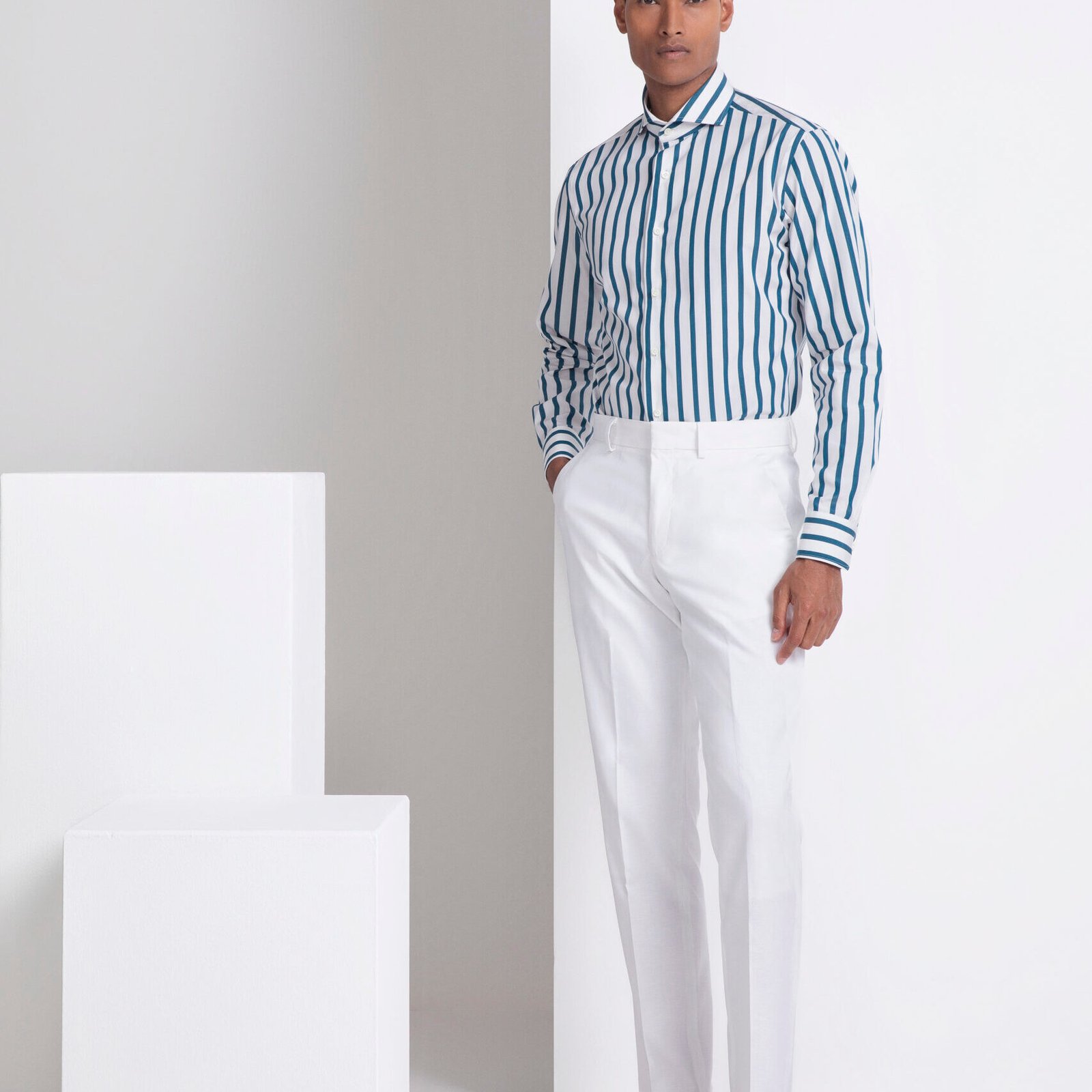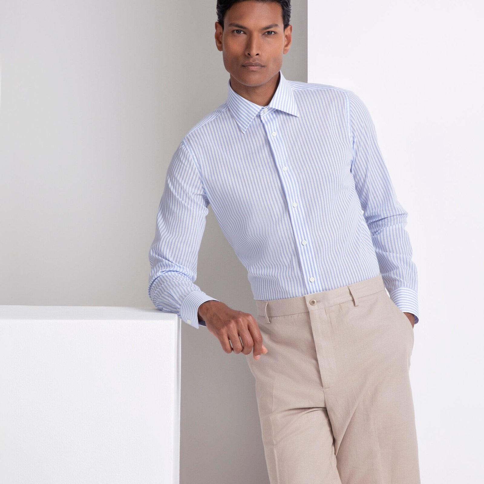 Il marchio Truzzi, fondato a Milano nel 1890 da Luigia Truzzi, si è affermato rapidamente come un punto di riferimento nel mondo dell’eleganza milanese. Oggi, Truzzi continua a distinguersi per l’eccellenza delle sue camicie, apprezzate nei più prestigiosi negozi in Italia e all’estero. Ogni camicia è realizzata con una cura artigianale senza pari: cucita interamente a mano, con chiusura a un ago, colletto rifinito con listino rigirato, stecca estraibile, bottoni in madreperla e manica decentrata per garantire una vestibilità perfetta.